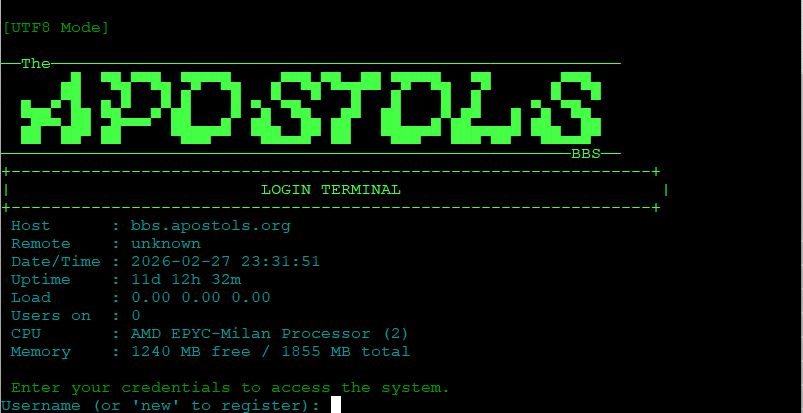 | Telnet: | bbs.apostols.org |