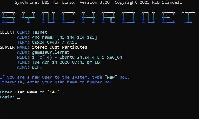 | Telnet: | stormgate.synchronetbbs.org |