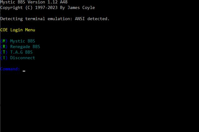 This BBS is using a non-standard telnet port (2377), the web telnet script may not work.