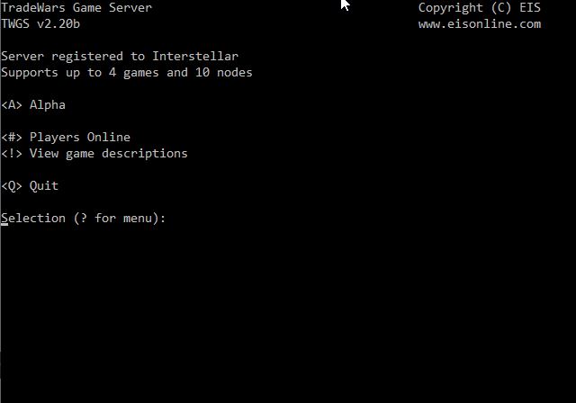 Connect to Interstellar TWGS Now! This BBS is using a non-standard telnet port (2002), the web telnet script may not work.