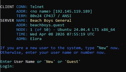 | Telnet: | beachboys.quest |