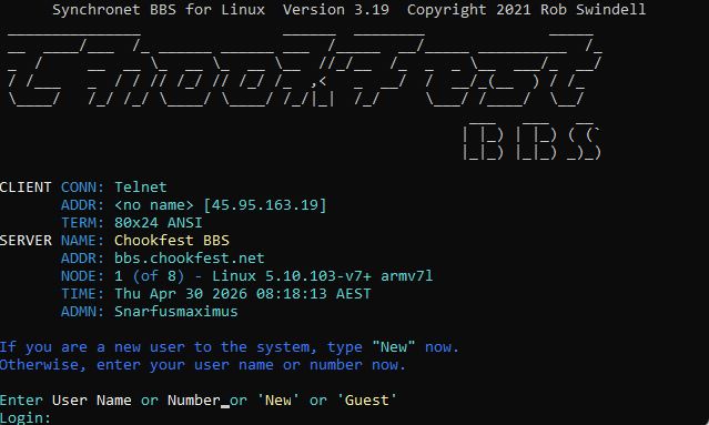 | Telnet: | bbs.chookfest.net:6800 |