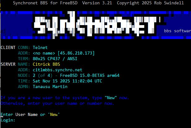 Started in 2021 in a fit of boredom during lockdown after discovering that a BBS can run on a Raspberry Pi. It’s mainly retrocomputing themed with useful software for various 1980’s systems. Telnet with port 6800 (my favourite CPU) for ASCII/ANSI, plus it supports 80-column PETSCII on port 8502.