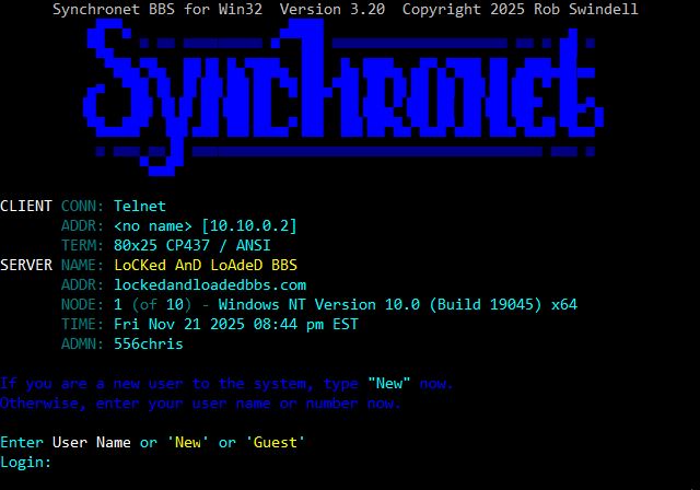 | Telnet: | bbs.lockandloadedbbs.com:223 |