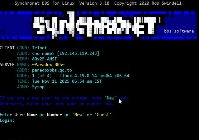 | Telnet: | paradoxbbs.synchronetbbs.org:513 |