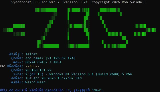 -=ZBS=- – this is a young BBS. -=ZBS=- is aimed at sysops and programmers. There will be an extensive collection of old programs, rare components, documentation for software and old hardware, etc. -=ZBS=- Supports Russian and English languages.